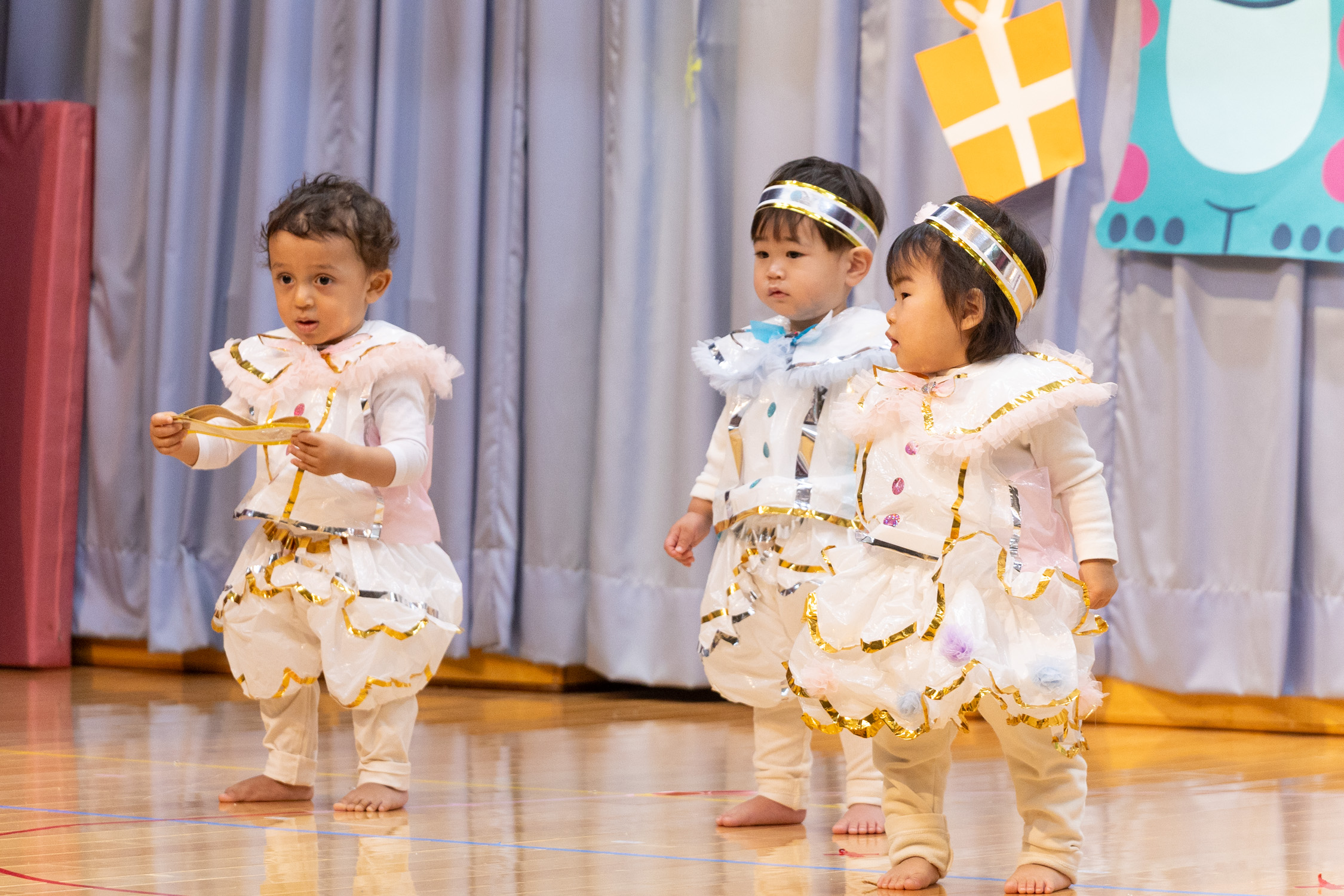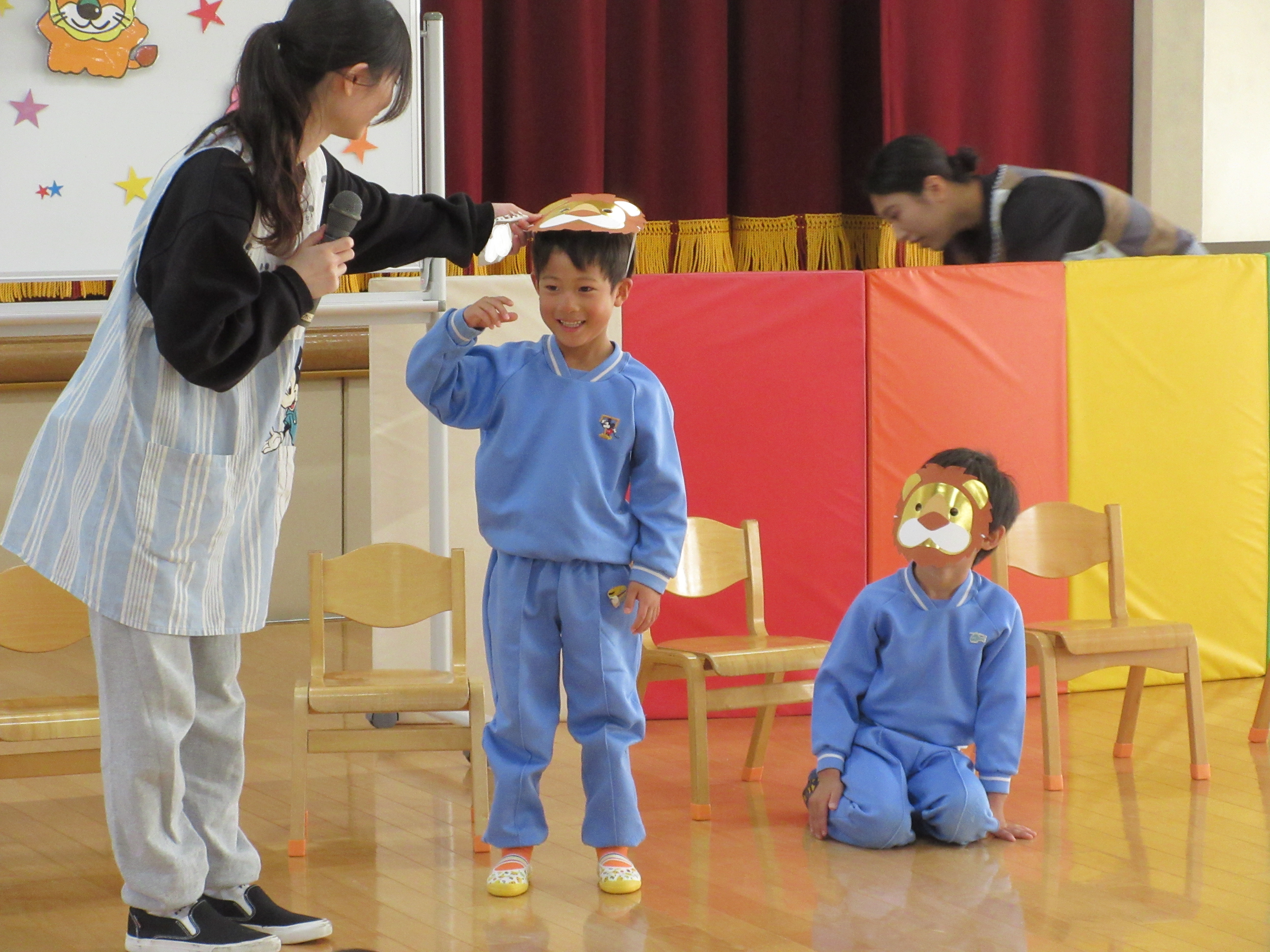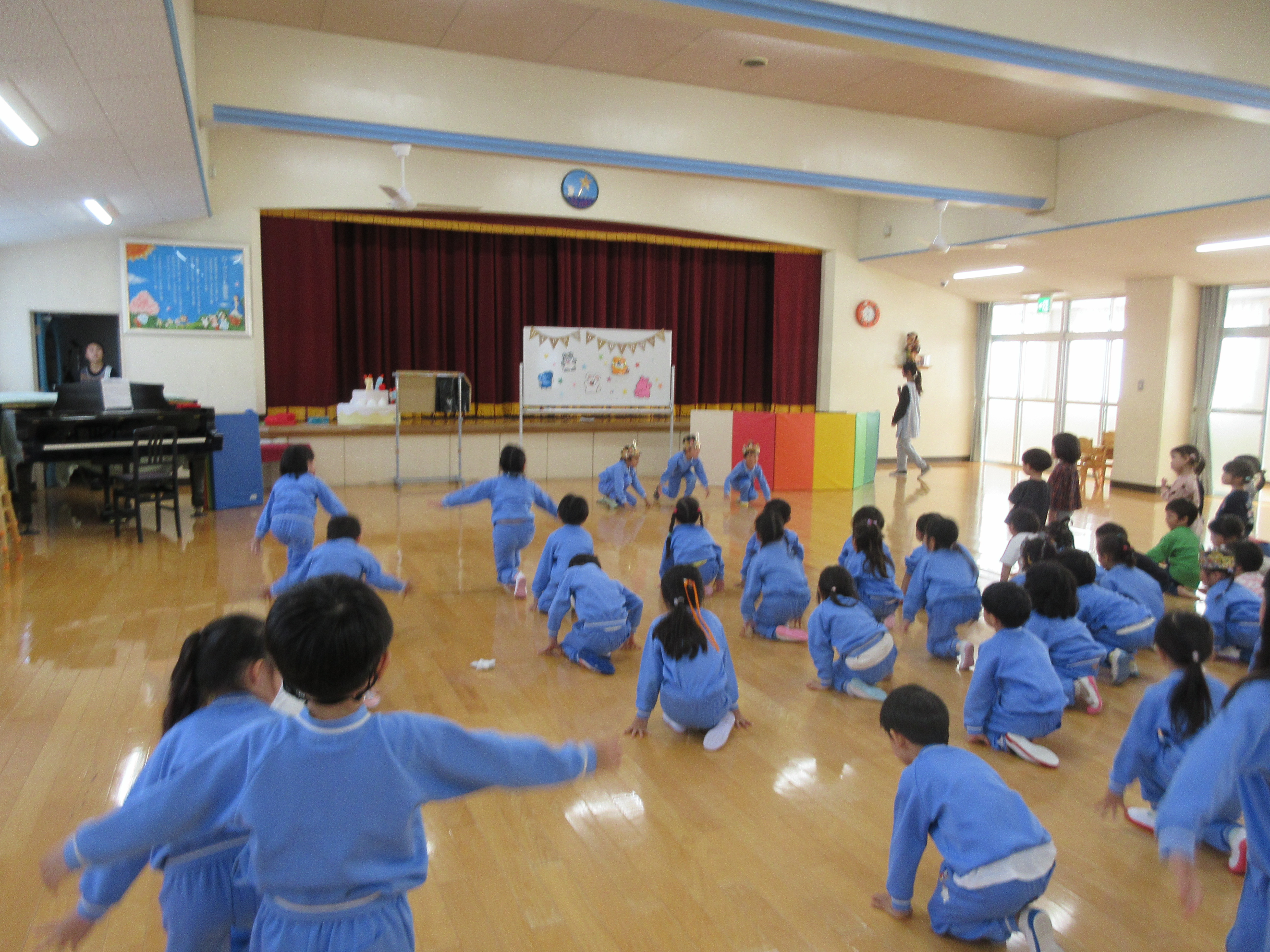 11月6日(木)に誕生会が行われました。誕生者のお友達が動物になりきって登場し、大盛り上がりでした。先生たちの出し物の「へんしんトンネル」も盛り上がっていました。