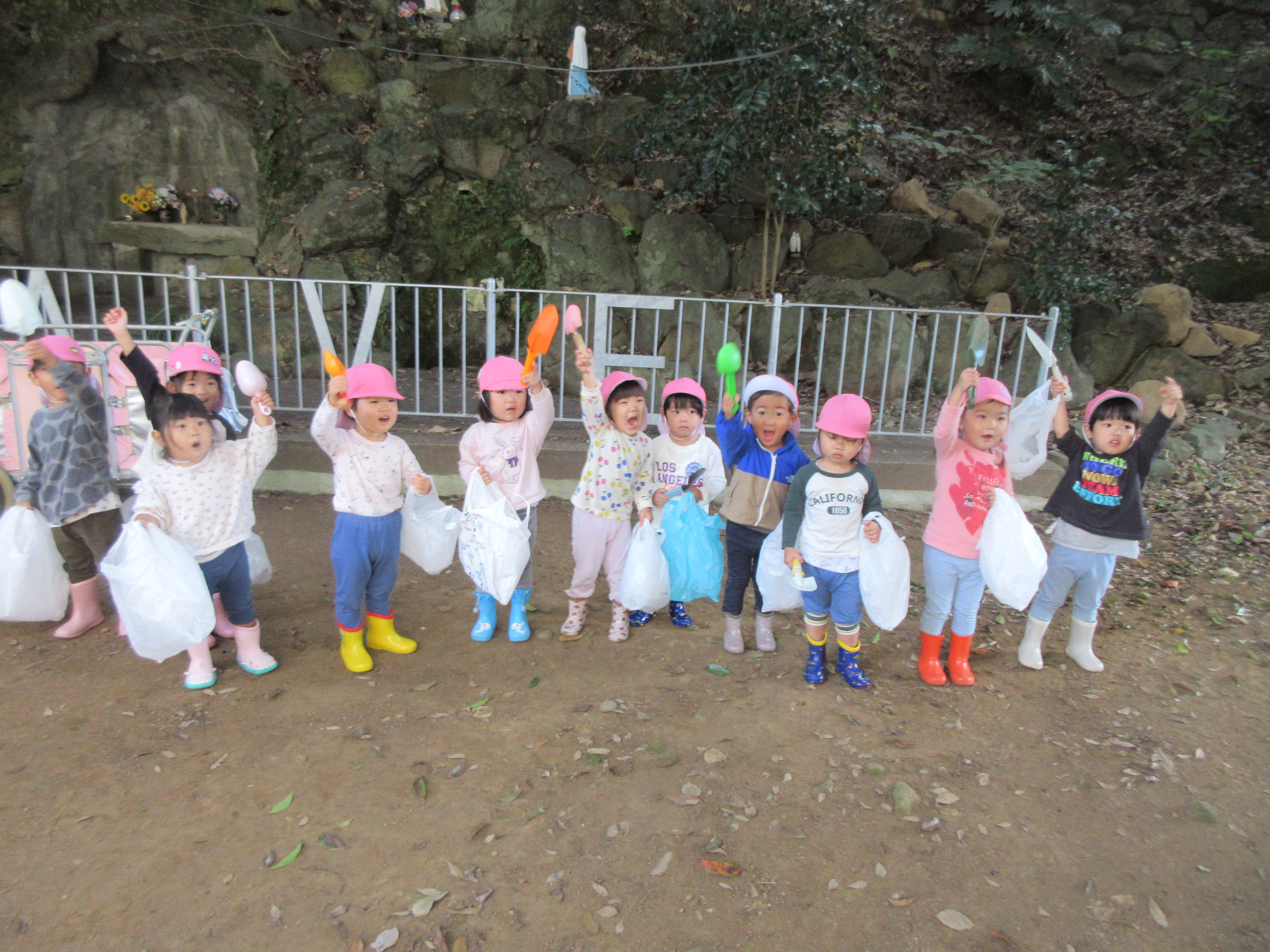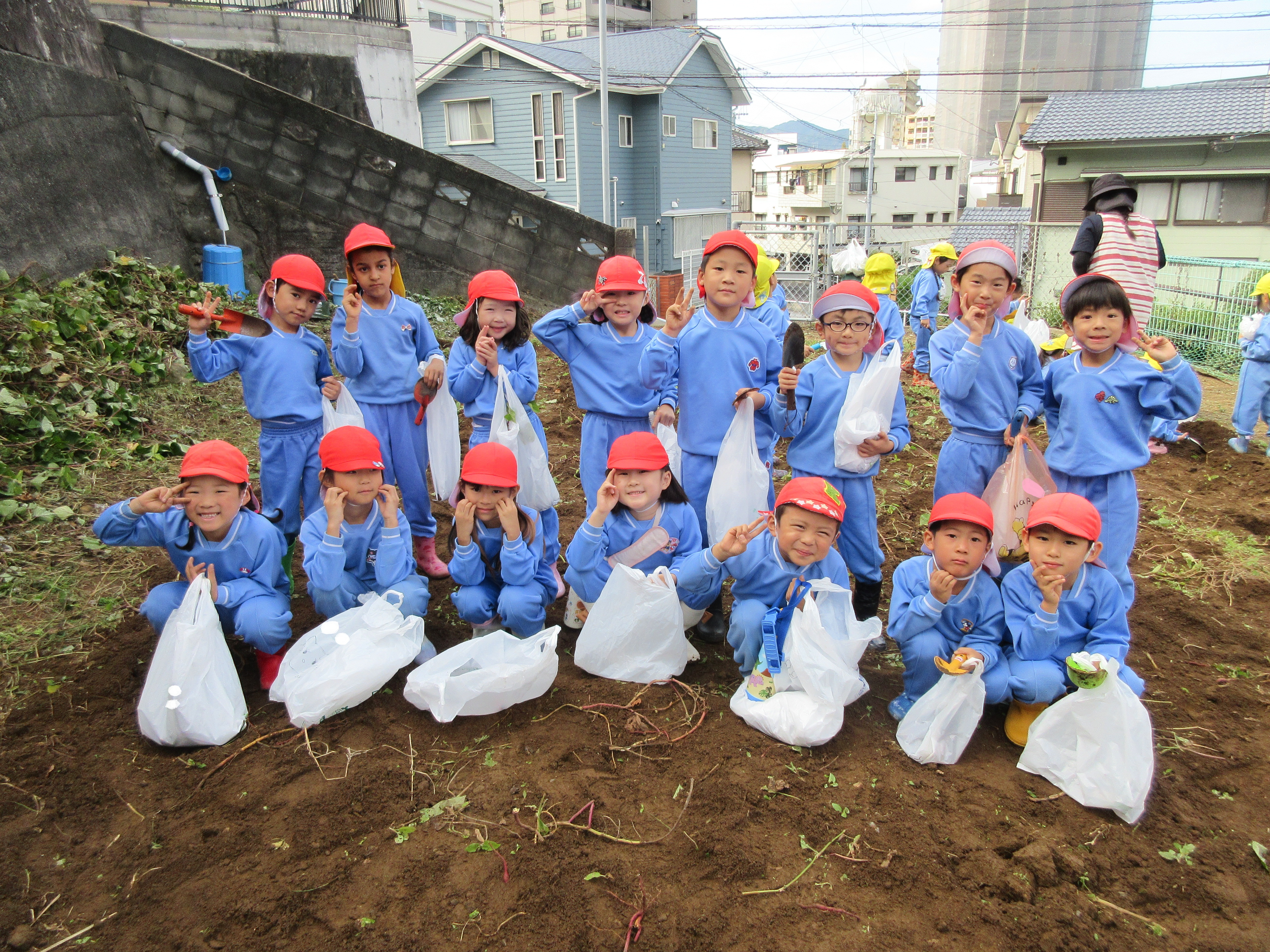 10月24日(金)に芋ほりに行って来ました。今年は今までにない不作であまりお芋が育っていなかったので残念でしたが、子ども達はお芋を見つけるたびに大喜びでした。