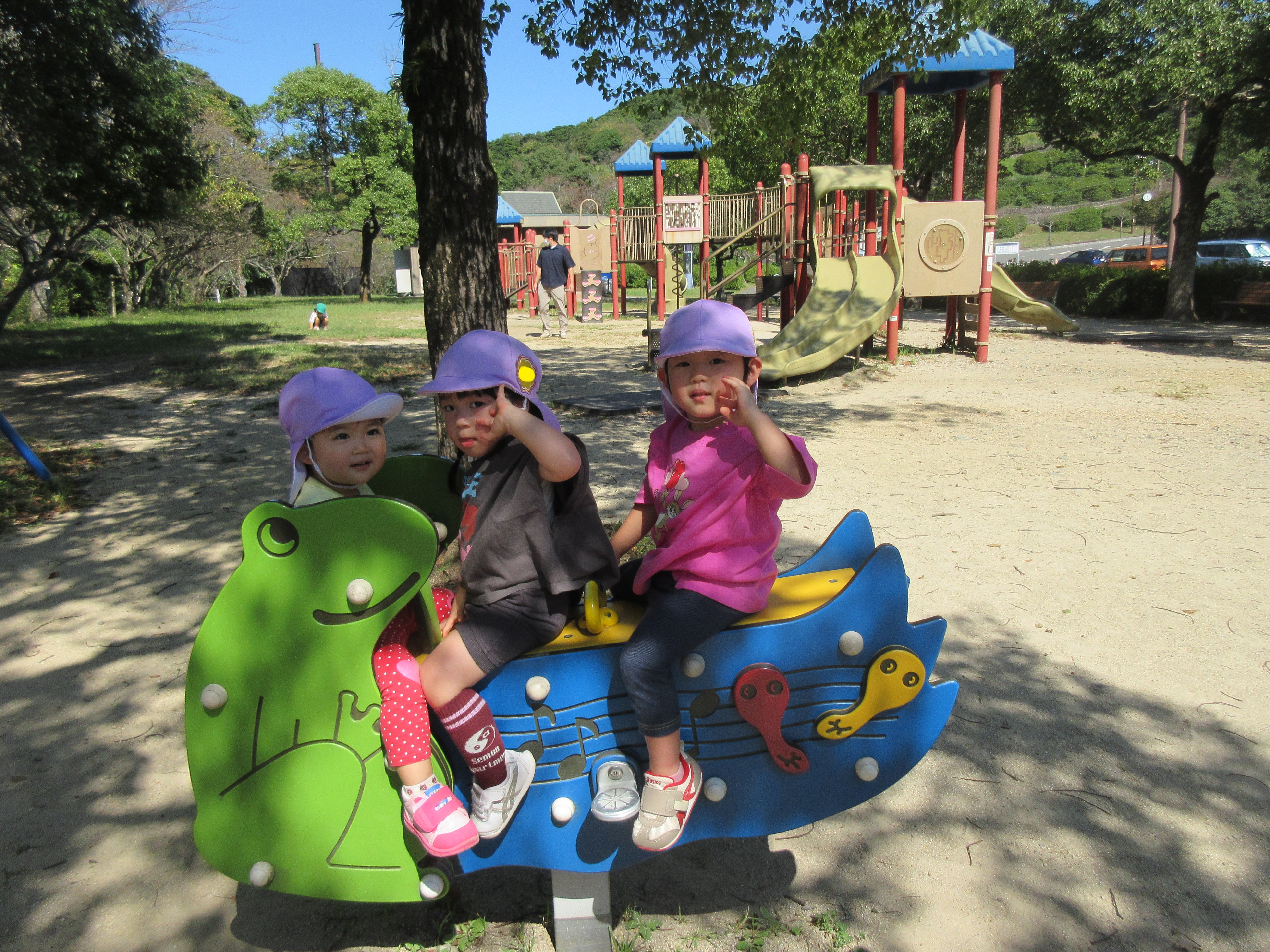 10月10日(金)の秋の遠足は親子で稲佐山公園へ行きました。いいお天気に恵まれて、体操をしたり、ゲームをしたり、楽しい時間をみんなで過ごすことが出来ました。