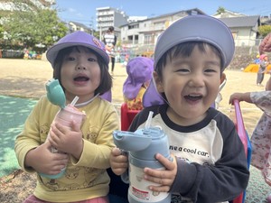 | 給食 | 完全給食(アレルギーによる除去食あり)3歳児以上は主食持参。 お弁当の日…月一回 特別メニュー(絵本給食) クッキング ★降園時、展示食を見ながら親子の会話が生まれ、 食育につながっています。 |