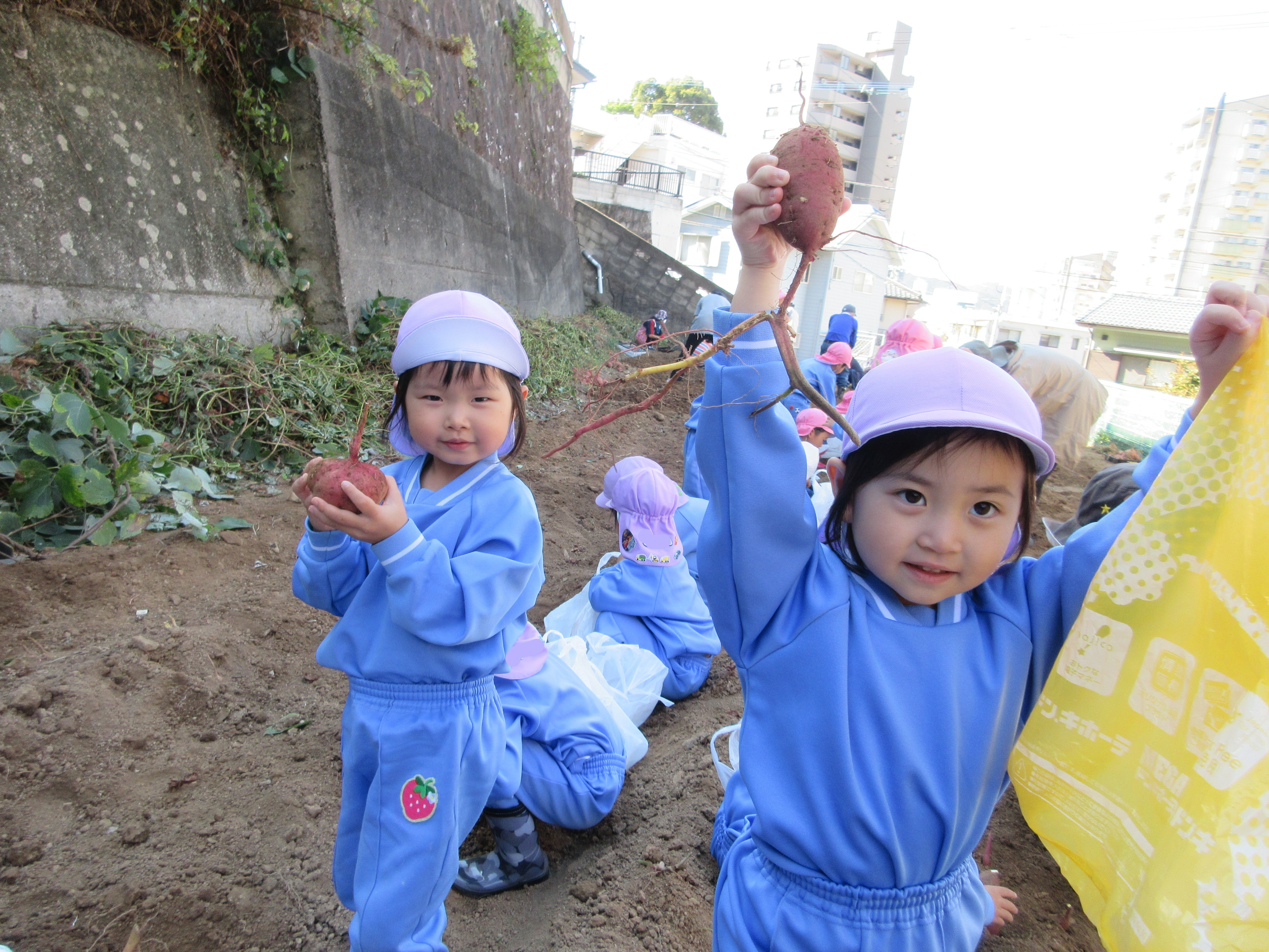 大きいのや小さいの、色んな形や大きさのお芋たちにこどもたちも大興奮でした♪取ってきたお芋は皆で分けて、持って帰りました(^▽^)/